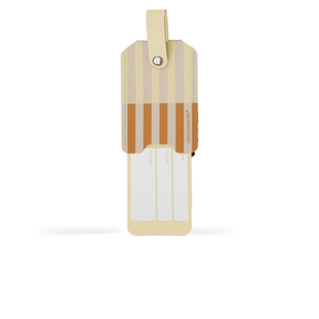 Su ingeniosa tapa de piel reciclada protege tus datos personales de miradas ajenas, asegurando tu privacidad con elegancia. El cautivador patrón de rayas aporta un dinamismo contemporáneo que facilita la identificación de tu maleta de forma rápida y con mucho estilo. Representa la unión perfecta entre funcionalidad superior y compromiso ambiental. Un accesorio esencial, producido en España por una empresa B-Corp certificada.