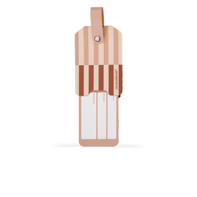 Su ingeniosa tapa de piel reciclada protege tus datos personales de miradas ajenas, asegurando tu privacidad con elegancia. El cautivador patrón de rayas aporta un dinamismo contemporáneo que facilita la identificación de tu maleta de forma rápida y con mucho estilo. Representa la unión perfecta entre funcionalidad superior y compromiso ambiental. Un accesorio esencial, producido en España por una empresa B-Corp certificada.