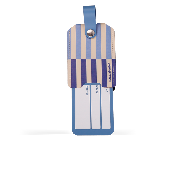 La Etiqueta para maleta Cover Stripes de vacavaliente combina seguridad y una estética vibrante para que tu equipaje destaque con personalidad propia en cada destino.