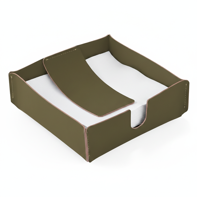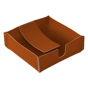 El servilletero cuadrado de vacavaliente combina geometría minimalista y piel reciclada para transformar un objeto cotidiano en una elección de diseño consciente.